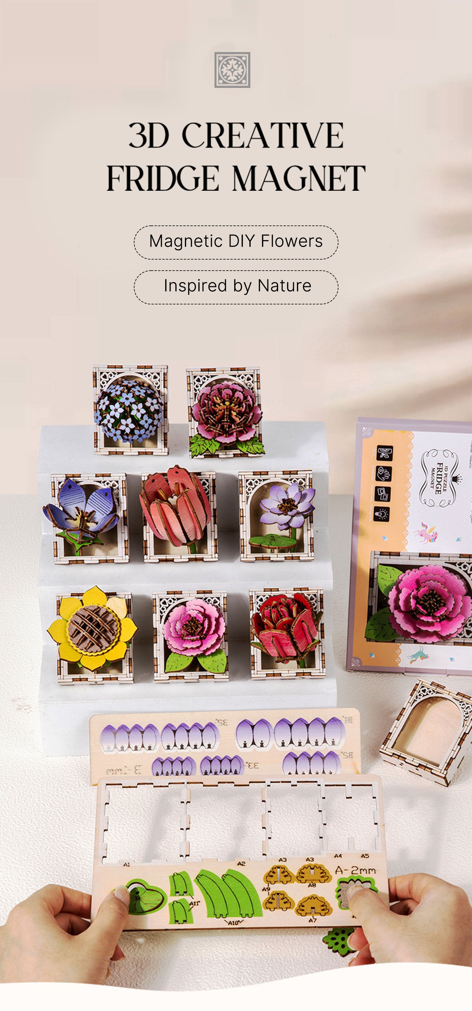 The Peony Fridge Magnet Kit is an elegant DIY wooden puzzle that lets you create a stunning 3D peony with rich, layered petals and lifelike details. Made from precision laser-cut pieces, it’s easy to assemble with a perfect fit and finished with a strong magnetic backing for secure display on fridges or magnetic boards. A relaxing craft and a beautiful handmade accent, this kit adds a touch of romance and charm to any space. 🌸
