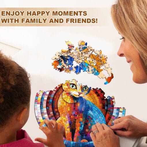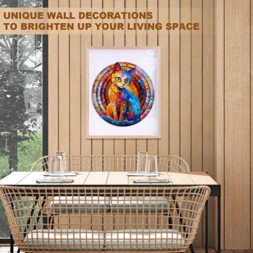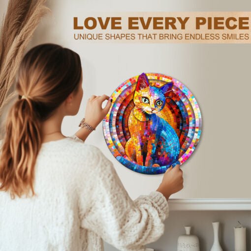 Illuminate your space with the dazzling Pixel Kitty wooden puzzle from Kaayee! This circular, visually stunning puzzle transforms the image of a captivating cat into a brilliant piece of mosaic art, reminiscent of stained glass.This unique Kaayee puzzle is crafted from high-quality wood with intricate, irregular cuts, ensuring a challenging and highly rewarding assembly experience. The Pixel Kitty is a perfect choice for cat lovers, art enthusiasts, and anyone who appreciates modern, vibrant, and abstract artwork.