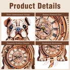 This charming wooden clock is designed in the shape of an adorable bulldog, blending playful personality with mechanical elegance. Crafted with precision, the clock showcases intricate laser-cut gears and Roman numerals, adding a touch of vintage steampunk flair. The bulldog’s expressive eyes and detailed features give it a lifelike and endearing character, while the pendulum-shaped tail adds a fun, animated touch. Both decorative and functional, this wooden bulldog clock makes a delightful addition to any pet lover’s home or a unique gift for fans of handcrafted artistry.