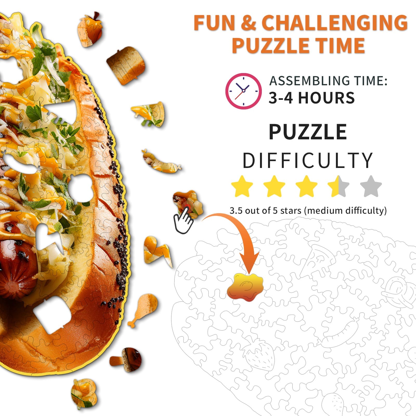 Indulge in the joy of life with Food Series Jigsaw Puzzles. Simple and daily delicious food not only fills the stomach but also soothes the heart. Featuring 13 common foods in daily life, with its bright colors, and about 110pcs format, this series is perfect for all ages and skill levels. Would be a nice choice for parties or family activities. Picture a juicy sausage nestled warmly within a soft, golden bun, adorned with an array of mouthwatering toppings. Hotdogs, a classic comfort food enjoyed by people of all ages, perfect for backyard barbecues, baseball games, and street vendors.