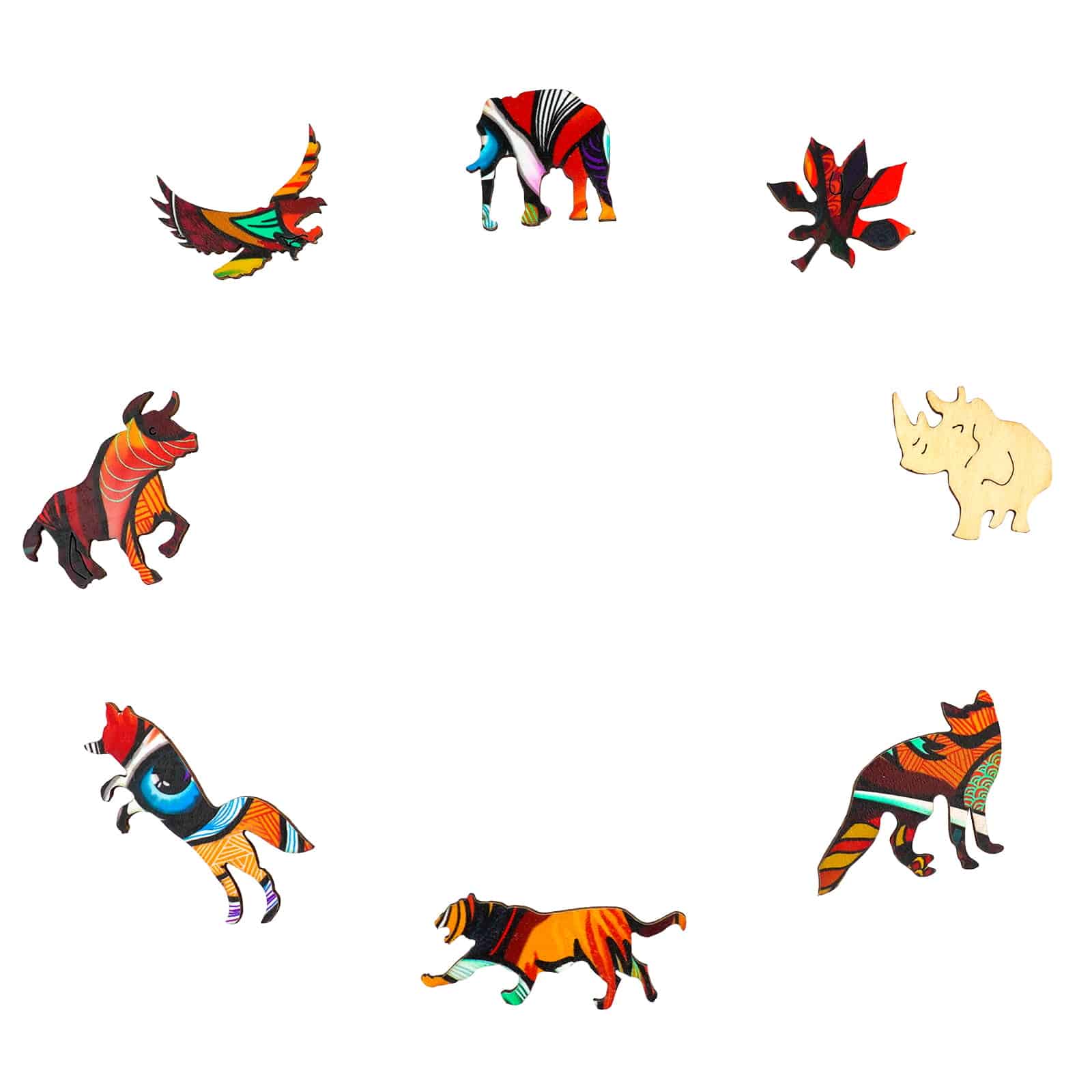 Shaped pieces are puzzle pieces handcrafted into recognisable shapes.