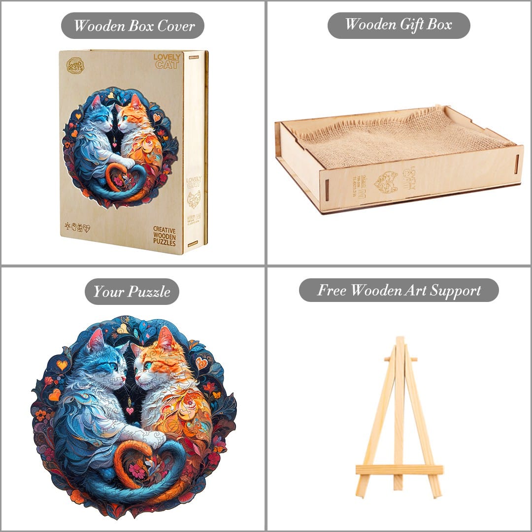 A love hug often symbolizes affection, comfort, and emotional connection. This simple yet profound gesture transcends words, allowing people to convey deep feelings of love and support. Whether between partners, family members, or close friends, a love hug provides a sense of security and belonging, fostering stronger bonds and enhancing emotional well-being. This puzzle features with two lovely cats embracing with each other and the heart shape formed by the intersection of their tails.