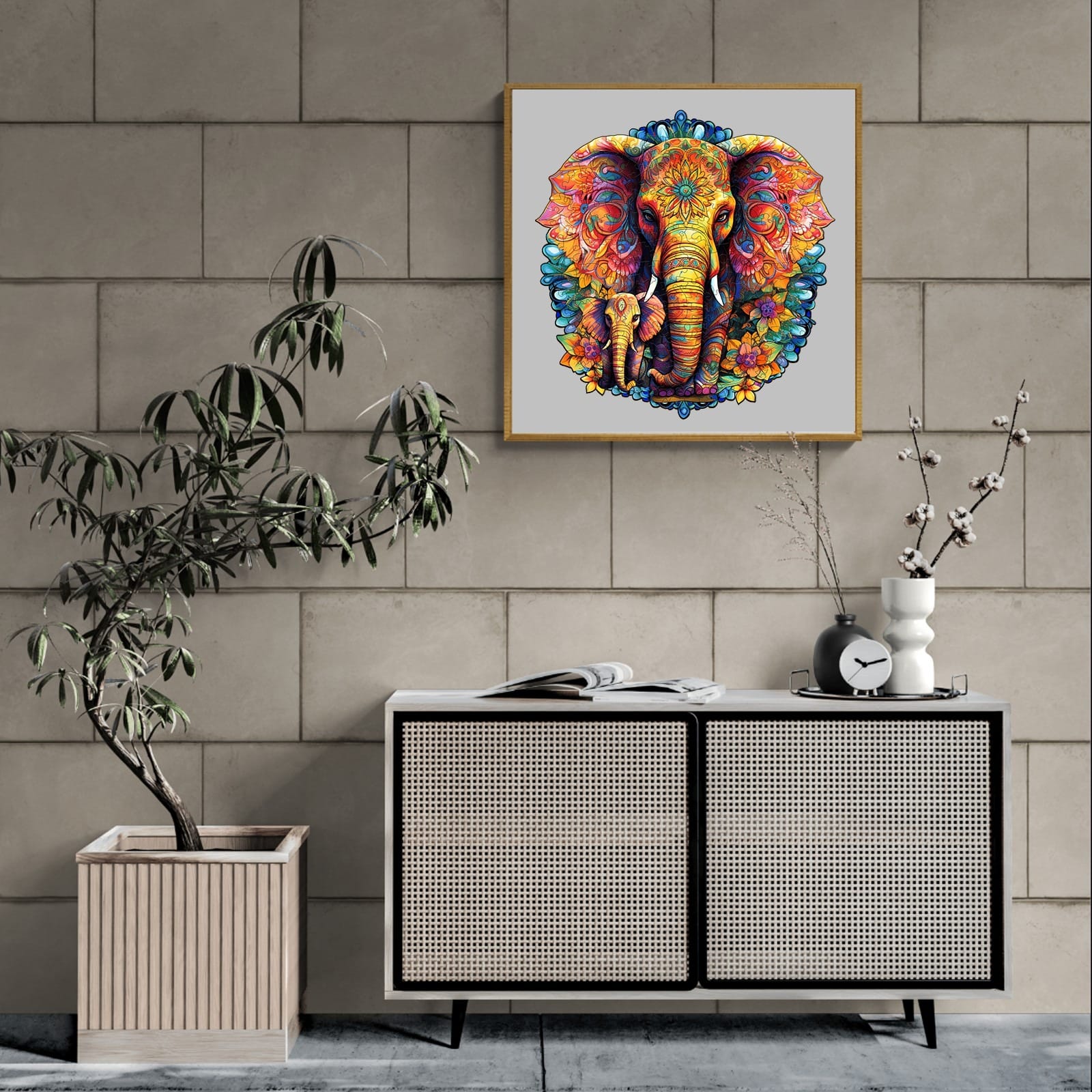 Mandala Elephant Family Wooden Jigsaw Puzzle