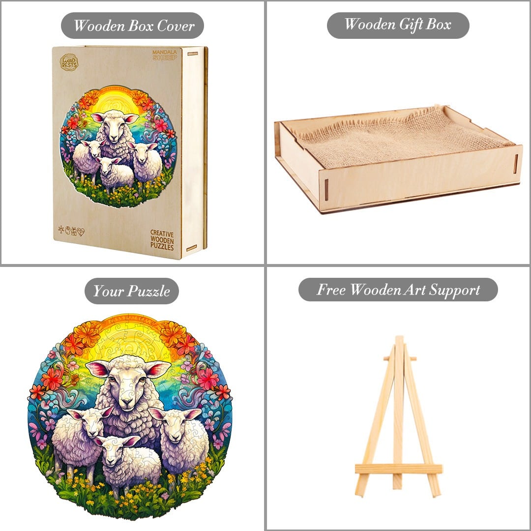 The combination of Mandala and sheep in this wooden jigsaw puzzle represents a beautiful fusion of symbolism and nature. The Mandala, a spiritual and geometric symbol, embodies unity, balance, and harmony. It signifies the interconnectedness of all things, reminding us to find inner peace and tranquility. Meanwhile, the sheep symbolizes innocence, purity, and gentleness. It represents a sense of safety, comfort, and nurturing. By combining these elements, the puzzle imparts a deeper message that encourages us to seek solace within ourselves, embrace our innate gentleness, and find a sense of balance and unity in our lives.