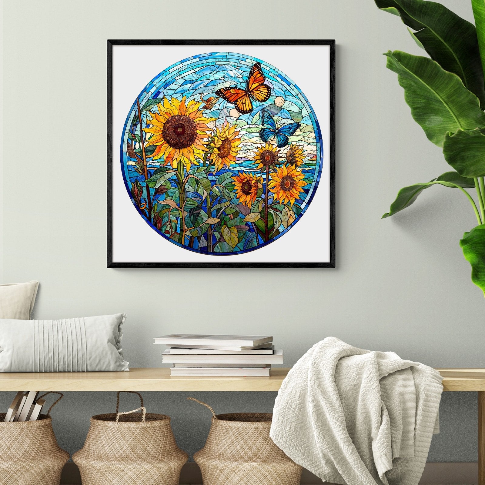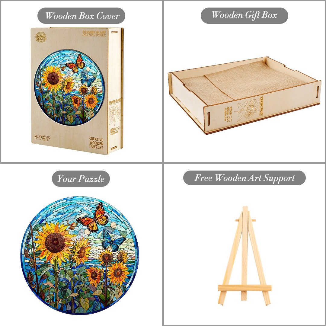Stained Glass Sunflower Wooden Jigsaw Puzzle