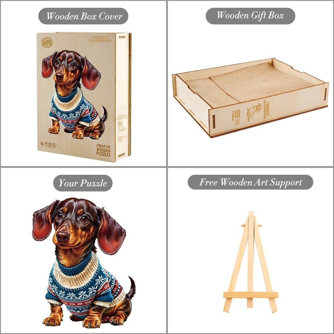 Trendy Dachshund Wooden Jigsaw Puzzle