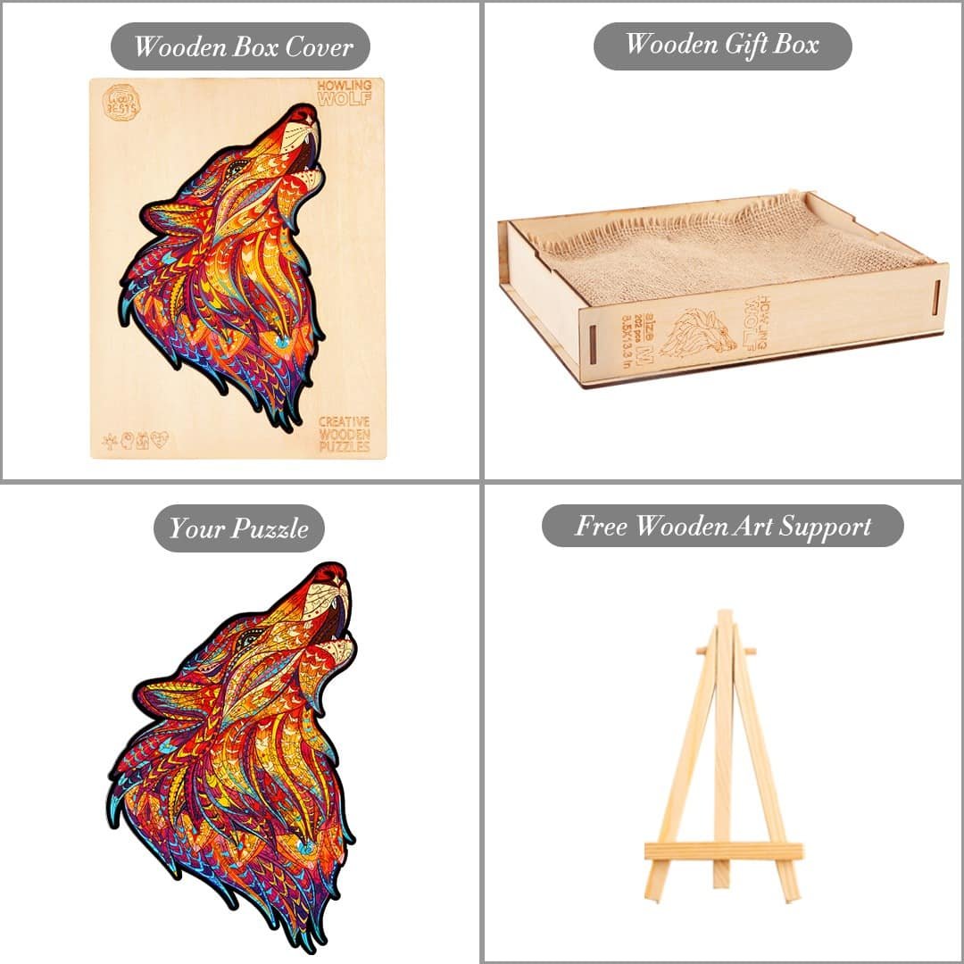 HOWLING WOLF RED Wooden Jigsaw Puzzle