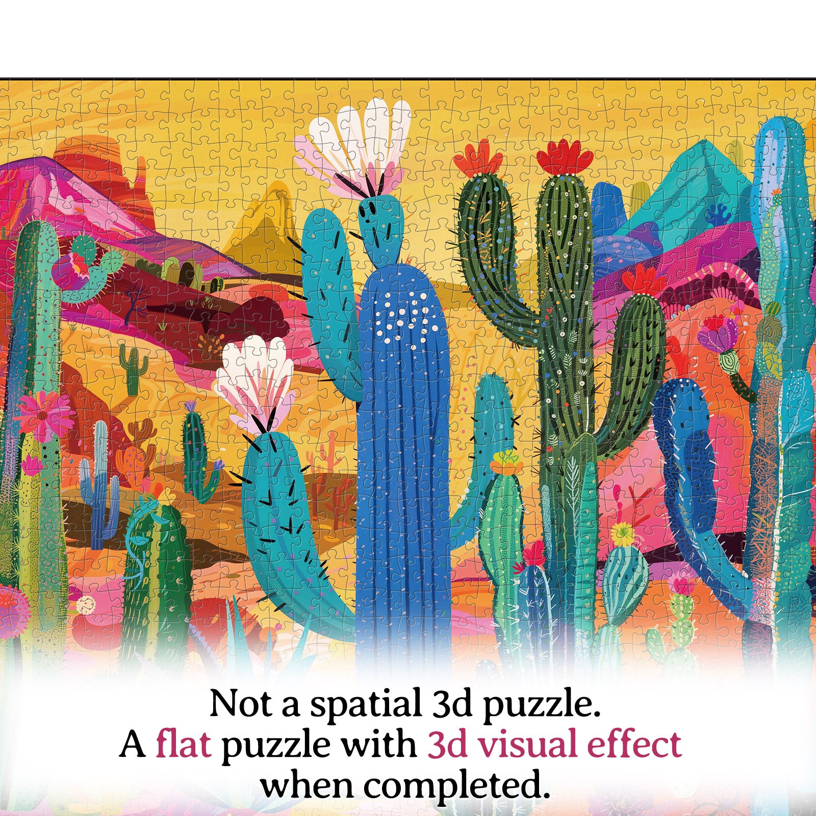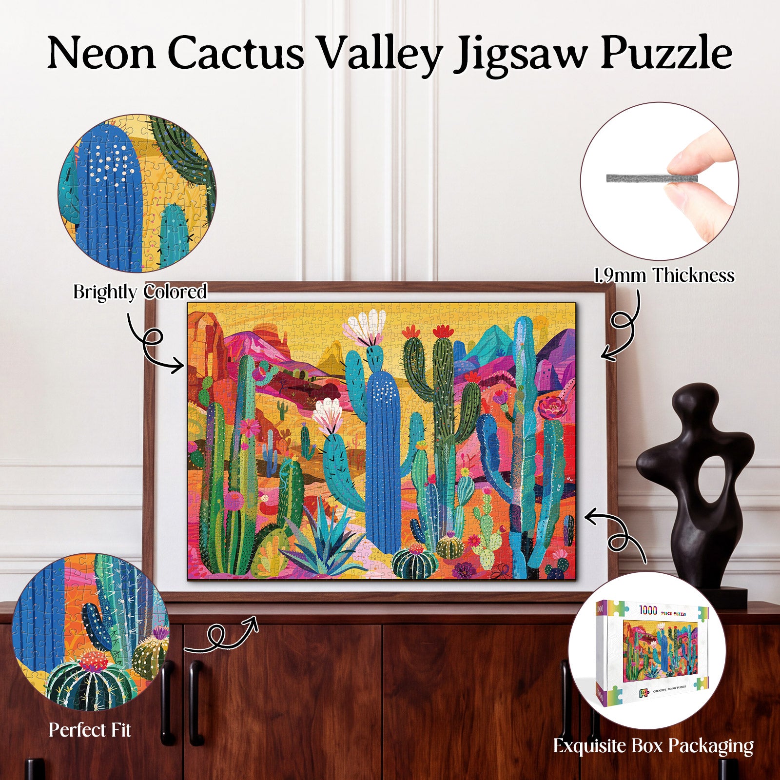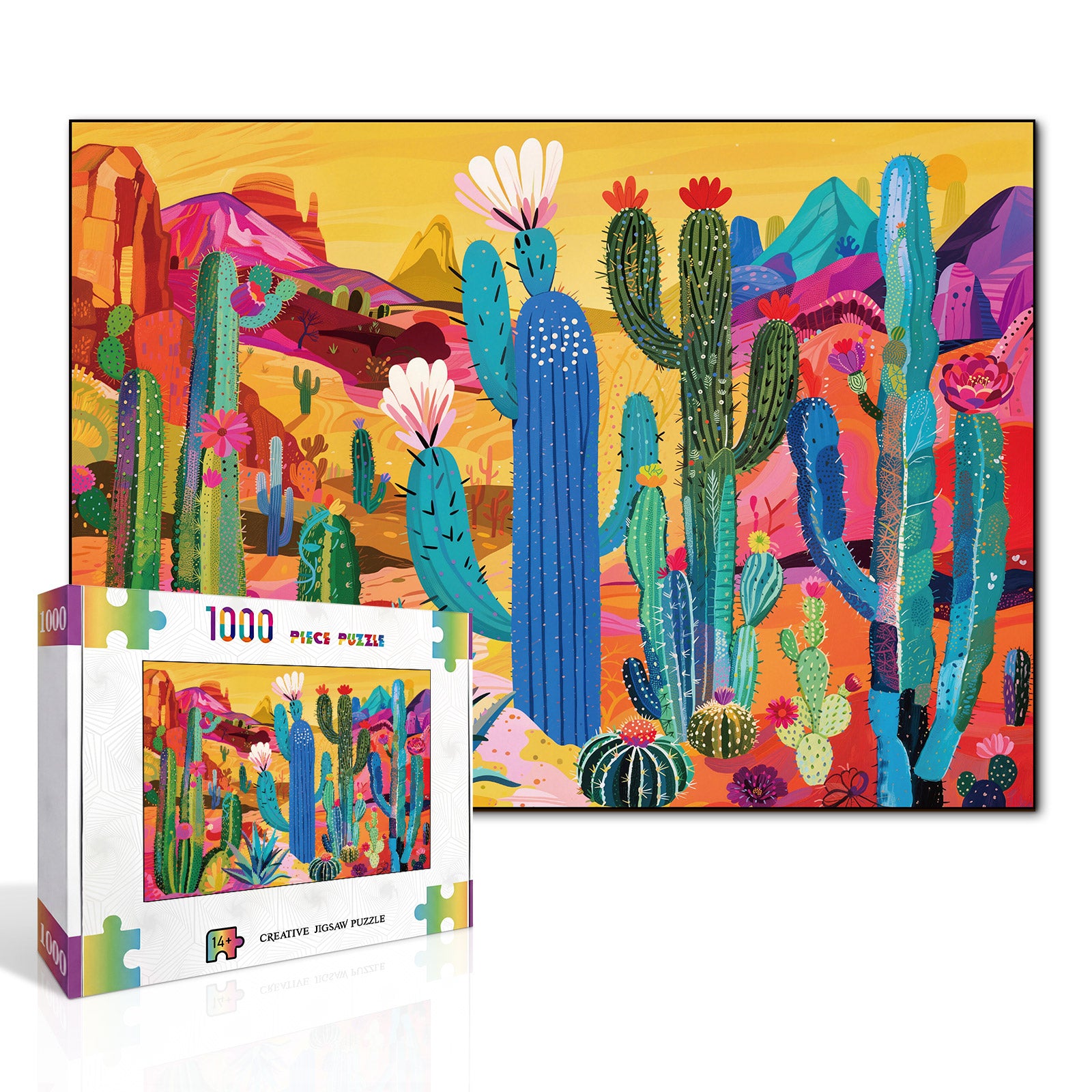 Artistic 1000-Piece Cardboard Jigsaw Puzzle - Neon Cactus Valley
