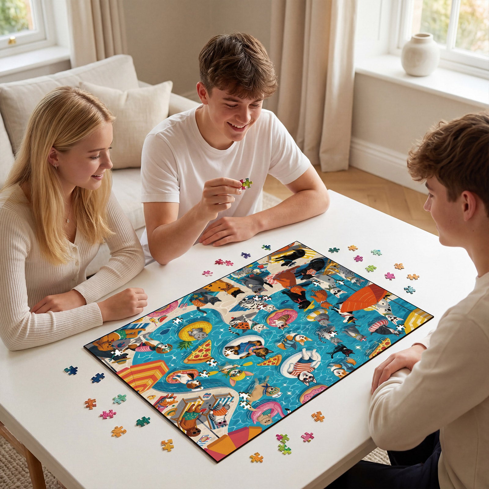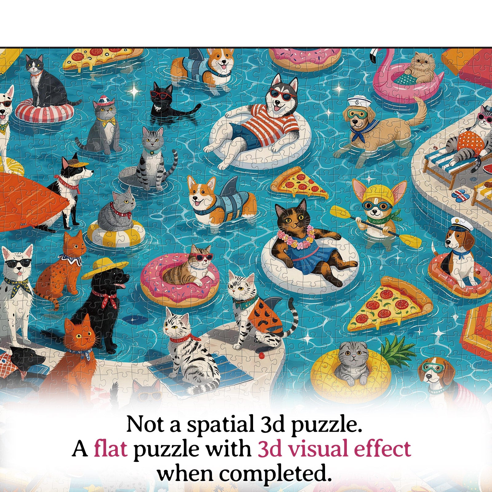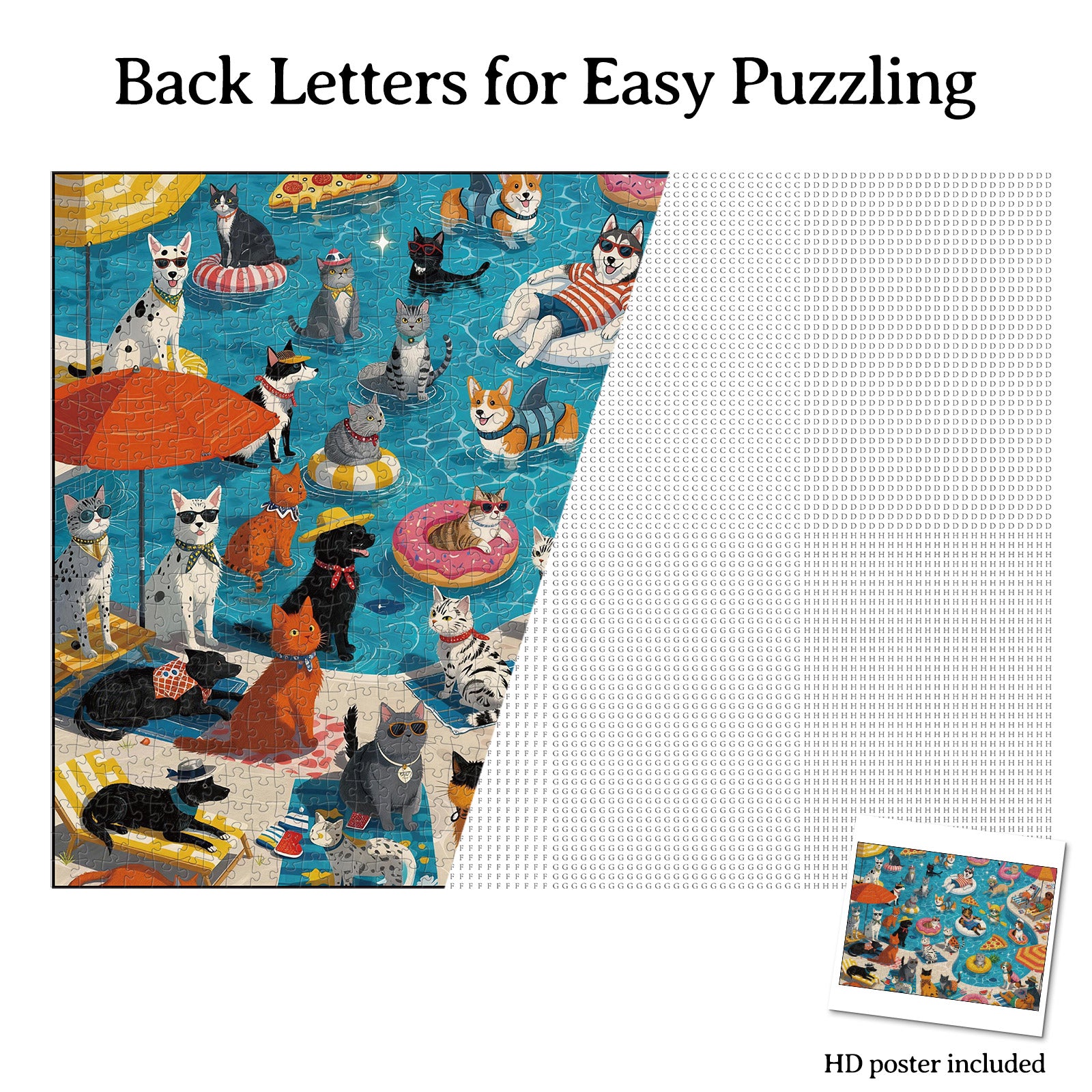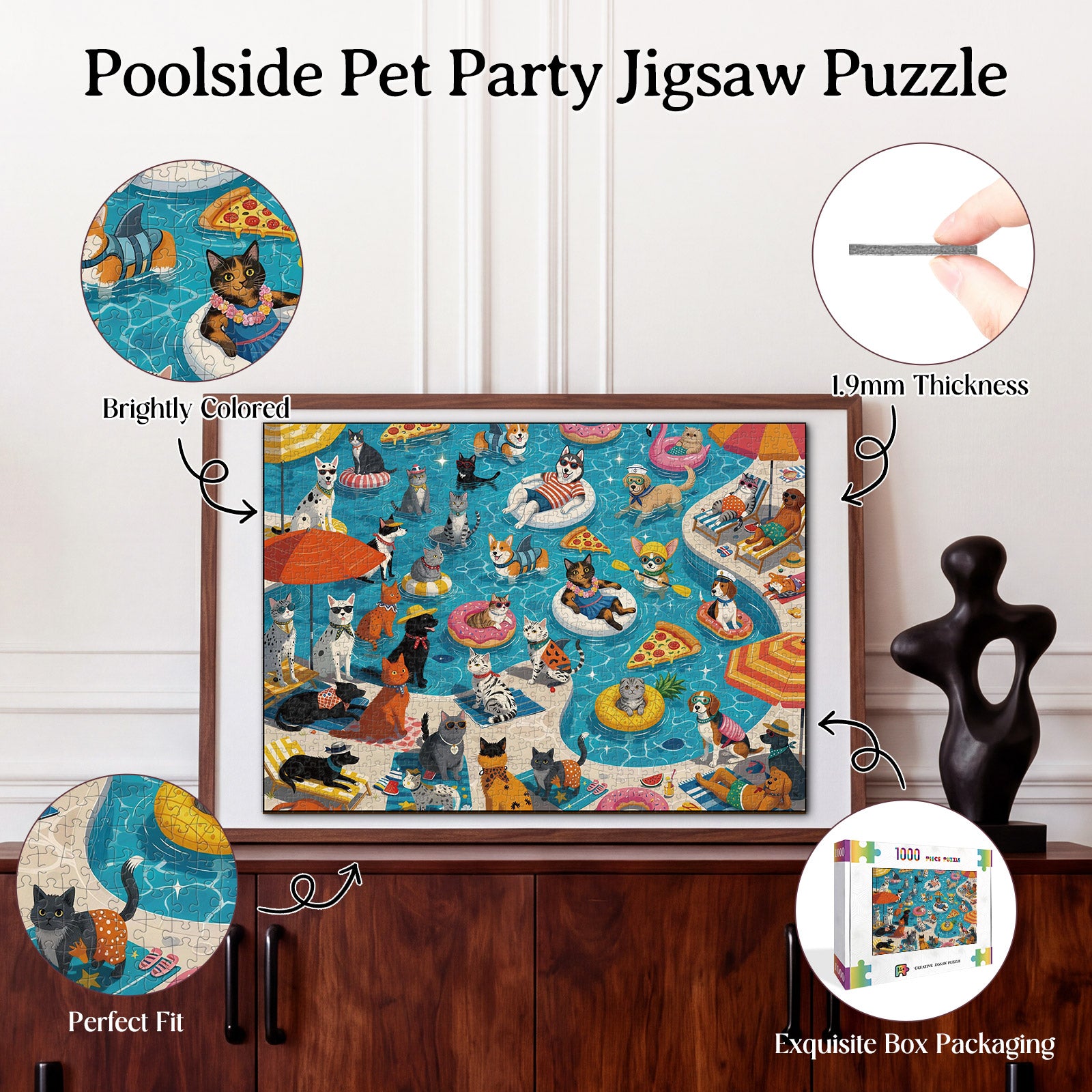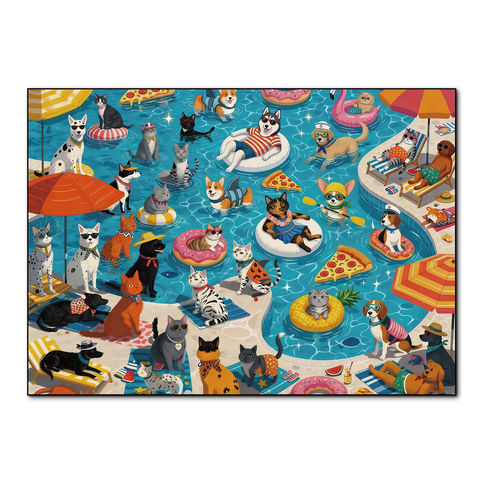 Artistic 1000-Piece Cardboard Jigsaw Puzzle - Poolside Pet Party