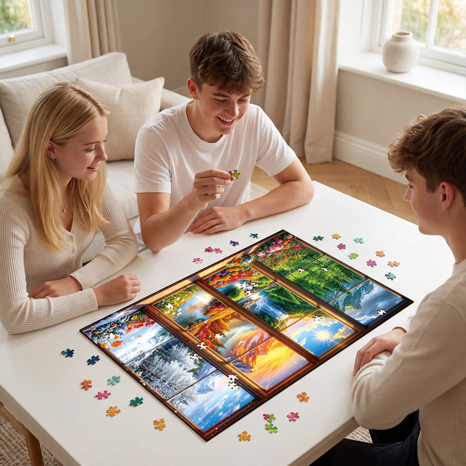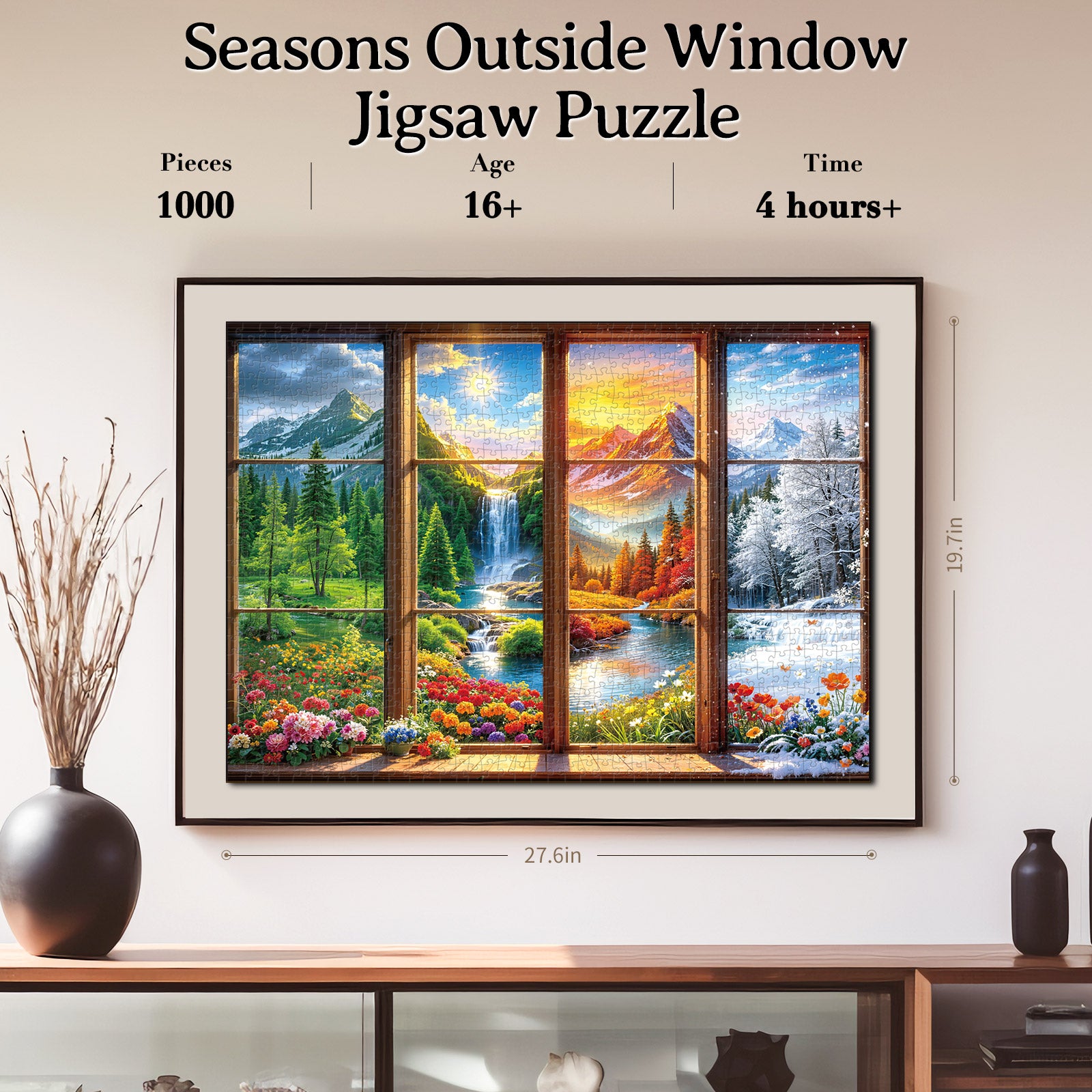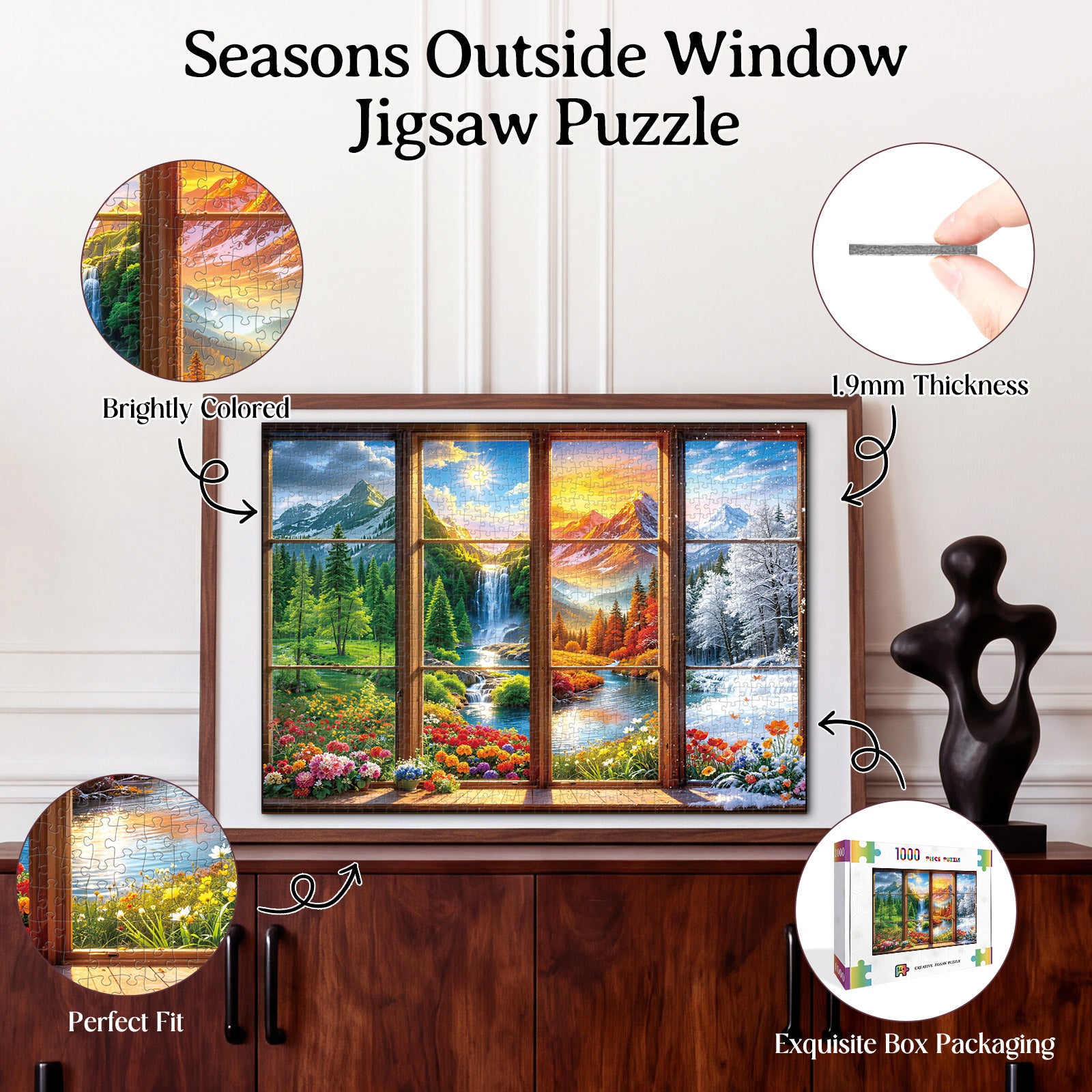 Artistic 1000-Piece Cardboard Jigsaw Puzzle - Seasons Outside Window