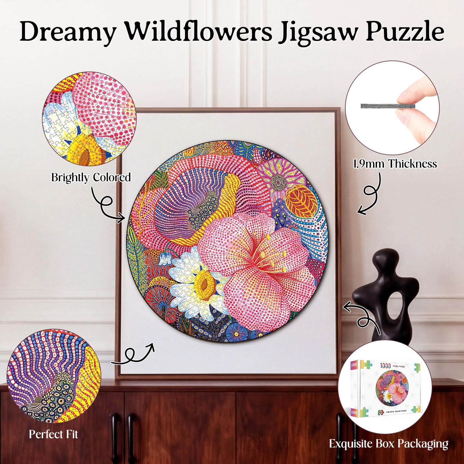 Artistic 1000-Piece Cardboard Jigsaw Puzzle - Dreamy Wildflowers