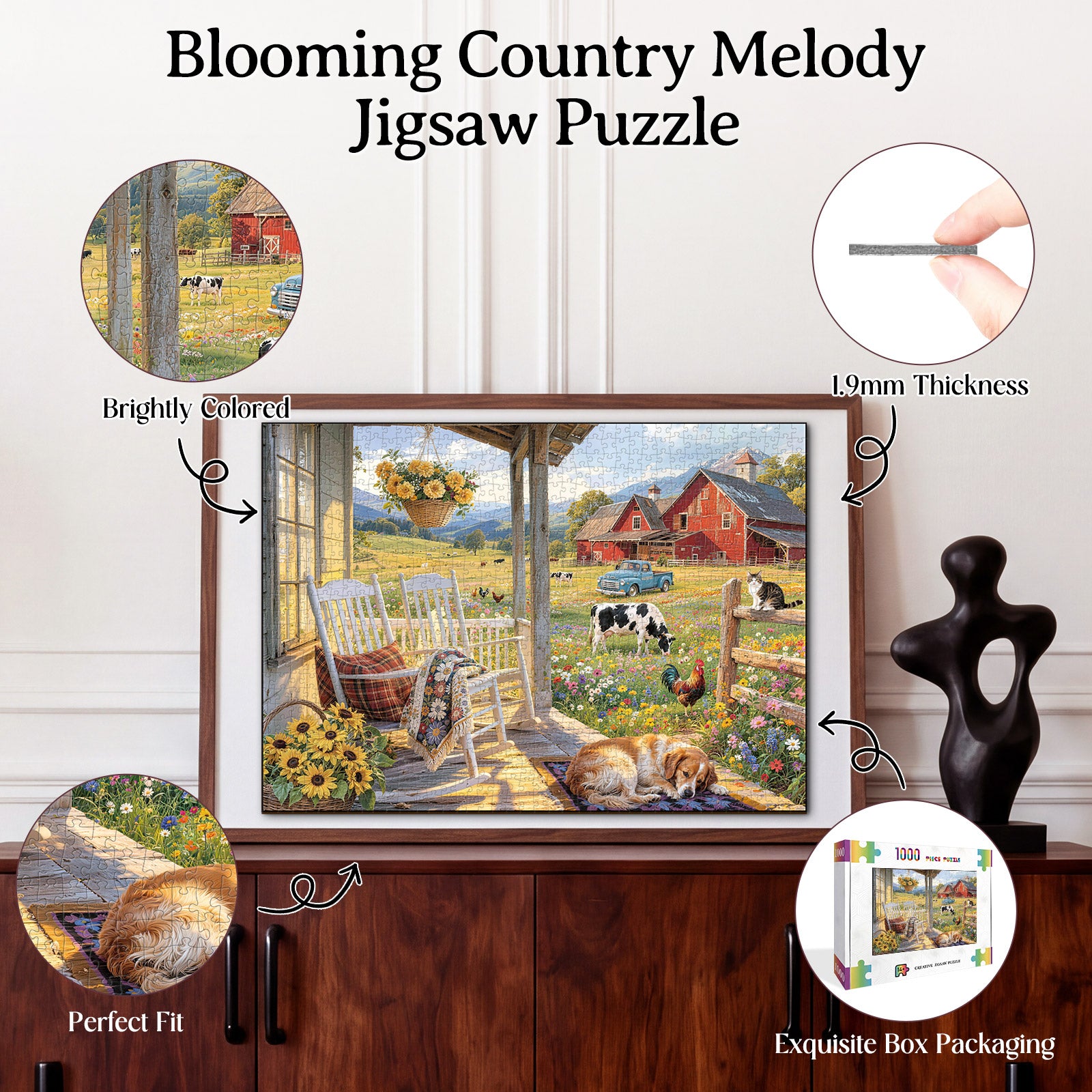 Artistic 1000-Piece Cardboard Jigsaw Puzzle - Blooming Country Melody