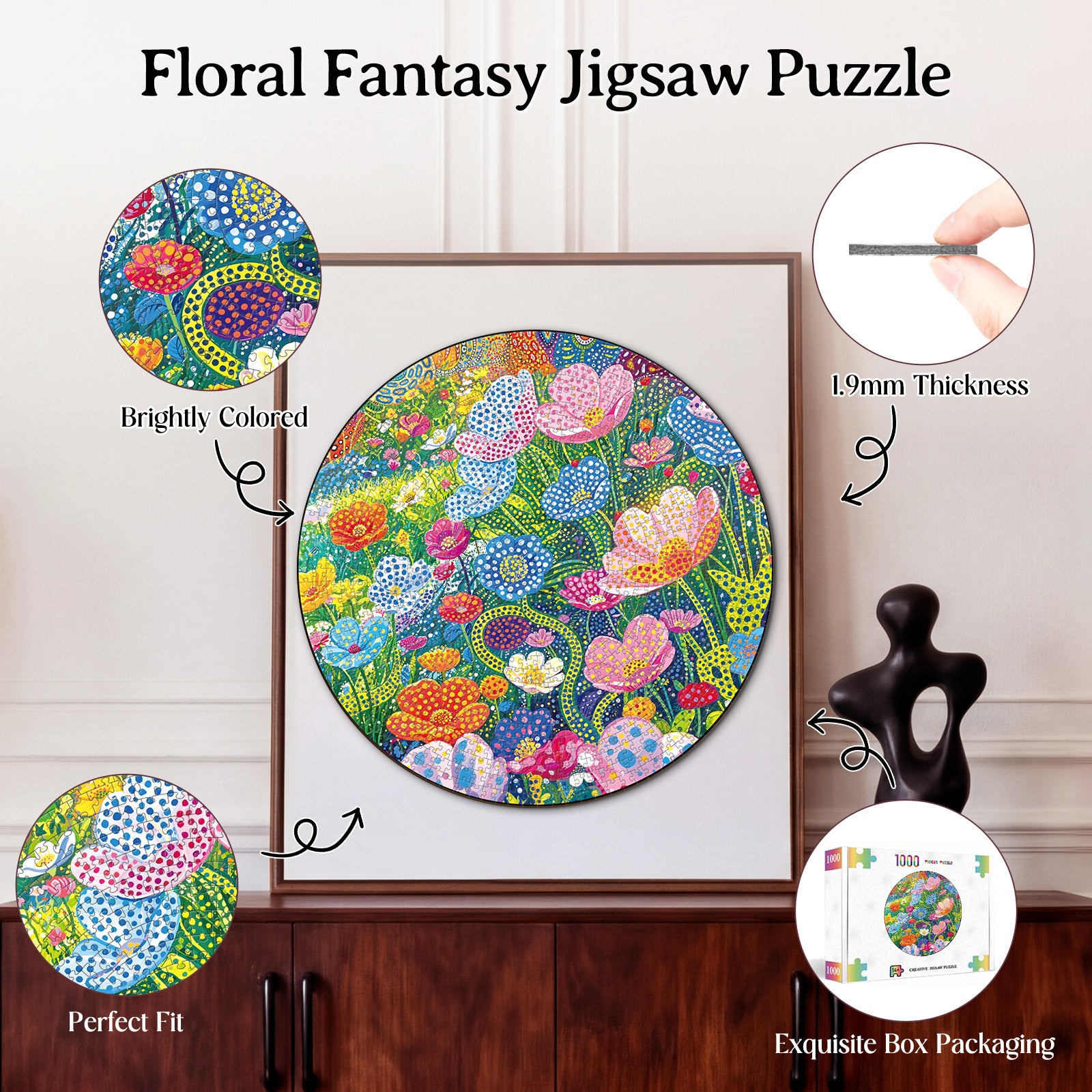 Artistic 1000-Piece Cardboard Jigsaw Puzzle - Floral Fantasy