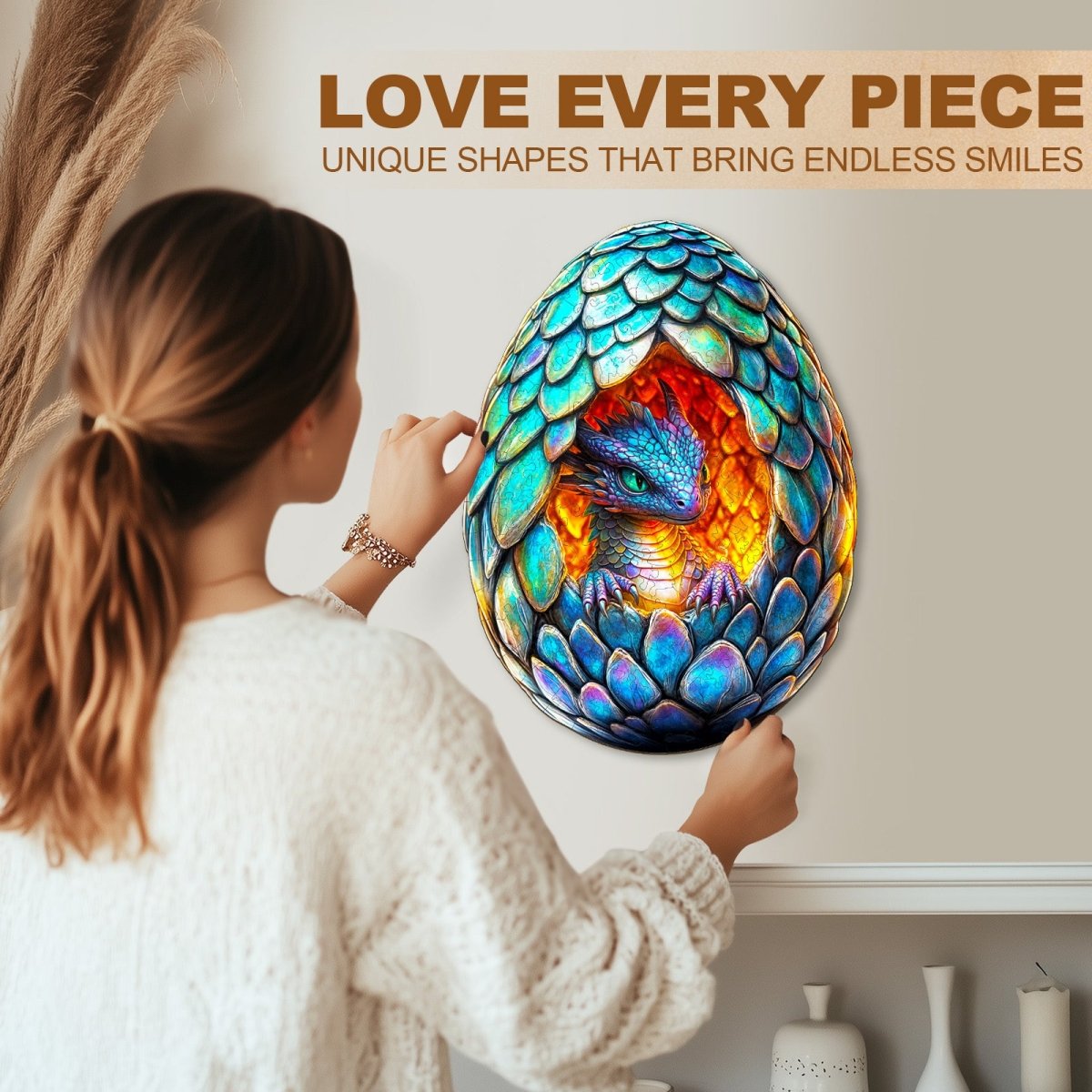 Bring a world of myth and wonder to life with Kaayee’s Dragon Egg Wooden Puzzle. Shaped like a mystical egg and featuring a vividly detailed baby dragon emerging from glowing embers, this handcrafted puzzle is a fantasy lover’s dream. The iridescent scales, fiery core, and piercing eyes are captured in stunning color and precision-cut wooden pieces. It’s more than a puzzle—it’s a collectible art piece that sparks imagination and awe. Perfect for fans of dragons, fantasy art, or anyone who enjoys a magical challenge.