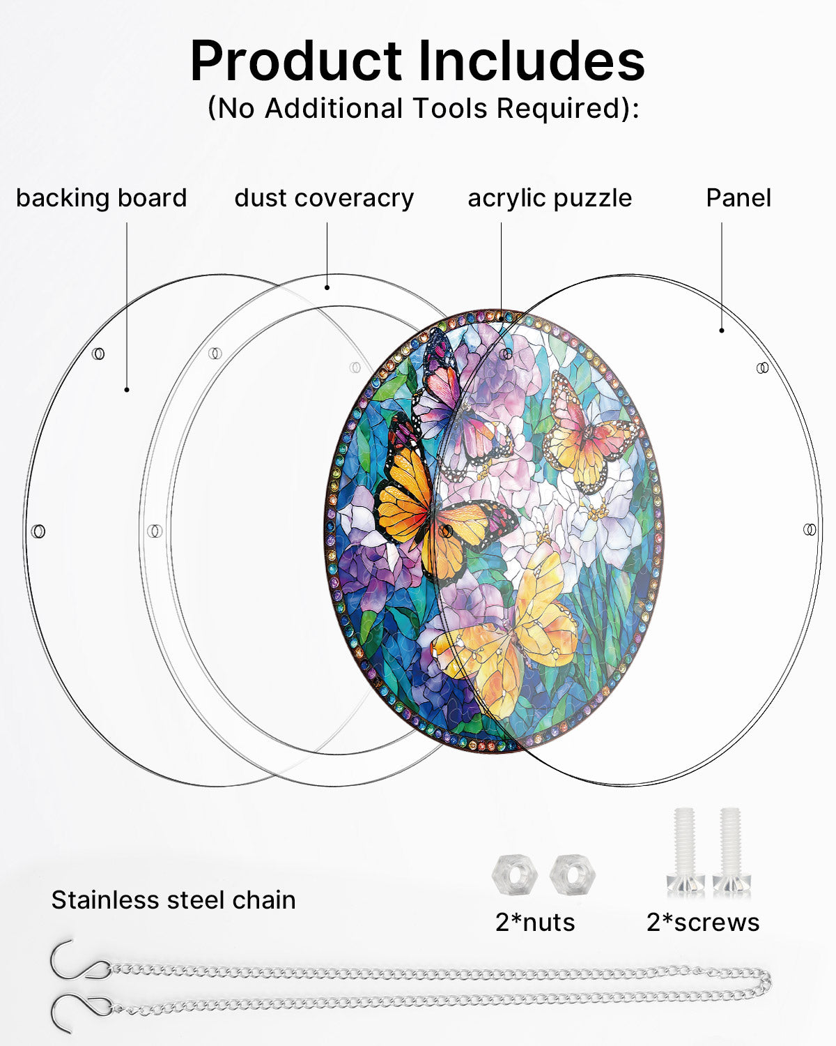 Bring nature's beauty into your home with this stunning acrylic jigsaw puzzle featuring vibrant butterflies among blooming flowers. Each transparent acrylic piece catches and refracts light, creating a mesmerizing suncatcher effect when displayed on a window or wall. Perfect for puzzle enthusiasts and nature lovers alike, this piece combines the satisfaction of puzzle-solving with decorative appeal. The intricate butterfly and floral design showcases beautiful color gradients and details that shine brilliantly in natural or artificial light. Once completed, hang it as a unique suncatcher that transforms any room with its luminous, artistic presence. Ideal for relaxation, mindfulness, and creating conversation-starting d¨¦cor.