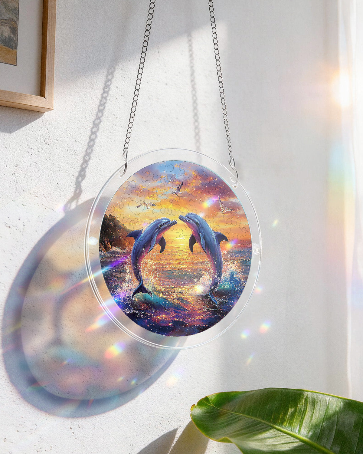 Dive into creativity with this stunning acrylic jigsaw puzzle featuring a beautiful dolphin design. Perfect for puzzle enthusiasts of all ages, this suncatcher combines the joy of puzzle-solving with decorative appeal. The acrylic pieces are durable and vibrant, creating a mesmerizing display when held up to light. Ideal for relaxation, mindfulness, or gifting to ocean lovers. Once completed, hang it in a window to let the light dance through the intricate dolphin artwork. A unique blend of entertainment and home d¨¦cor that brings the magic of the ocean into your space.