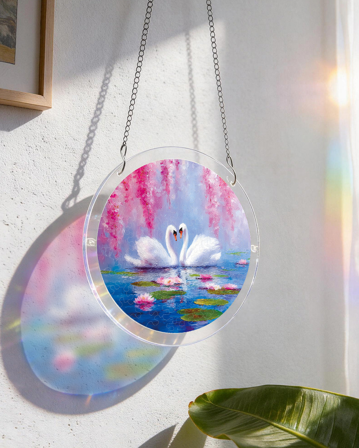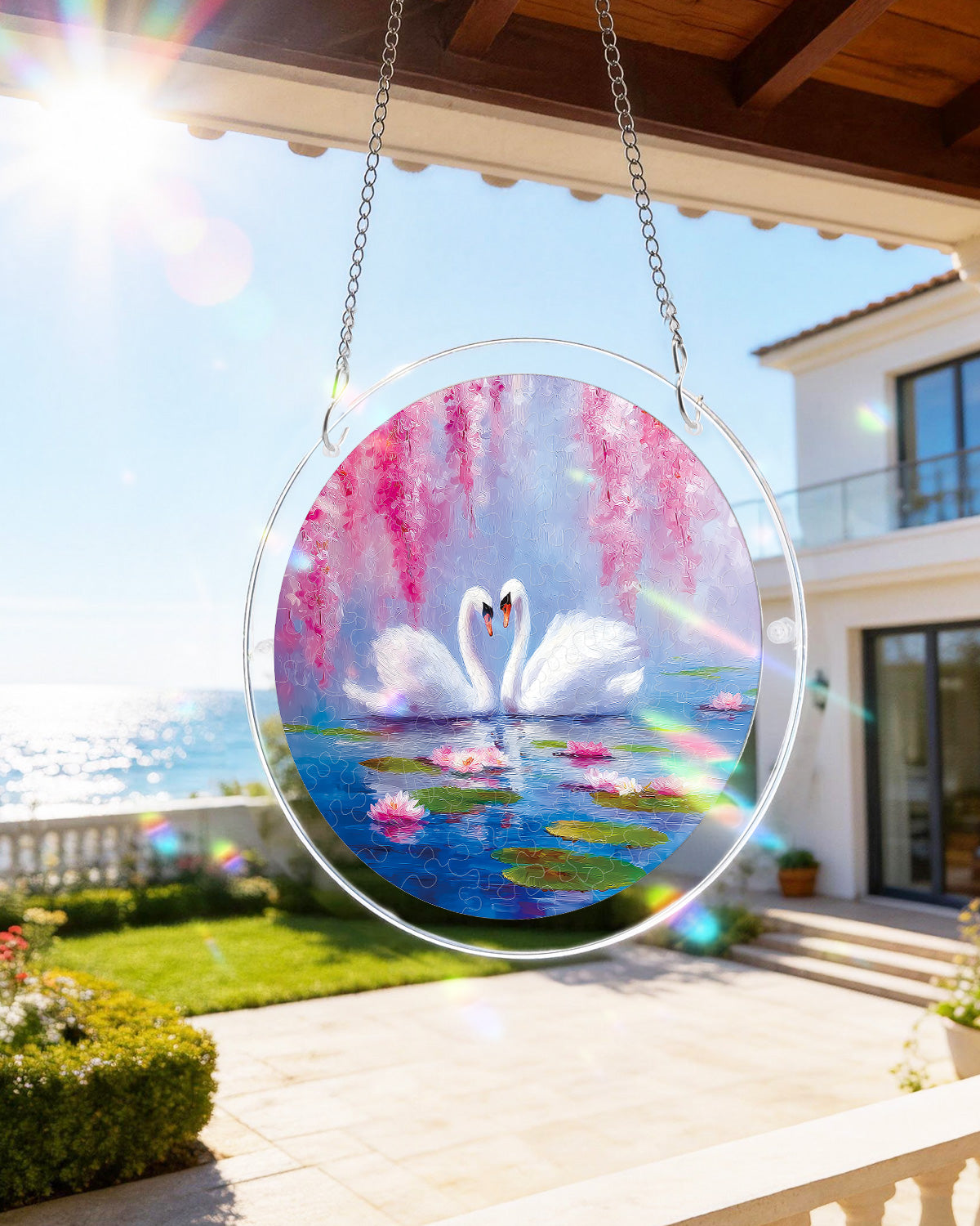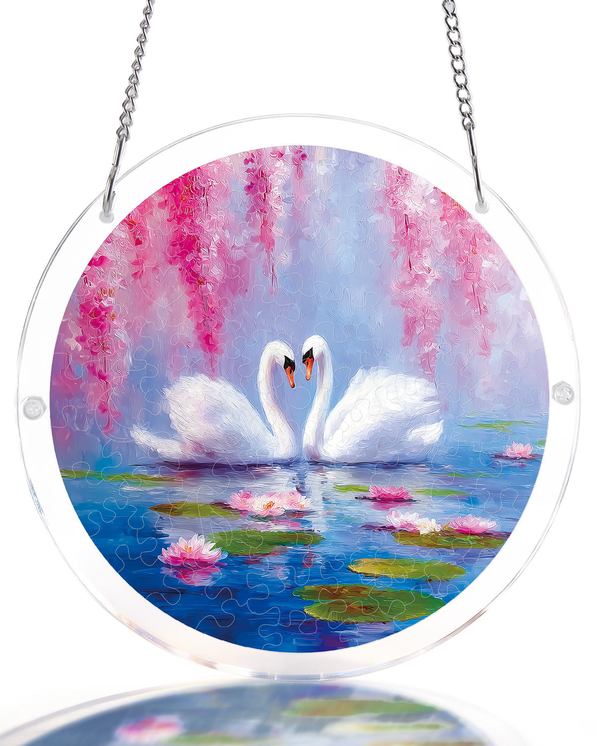 Swans in Blossom Lake Light Suncatcher-Acrylic Window Art
