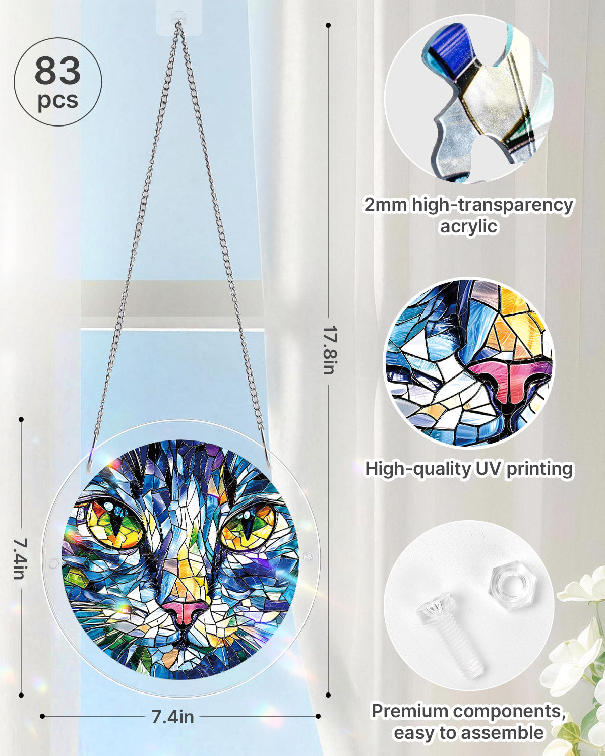 Mosaic Cat Light Suncatcher-Acrylic Window Art
