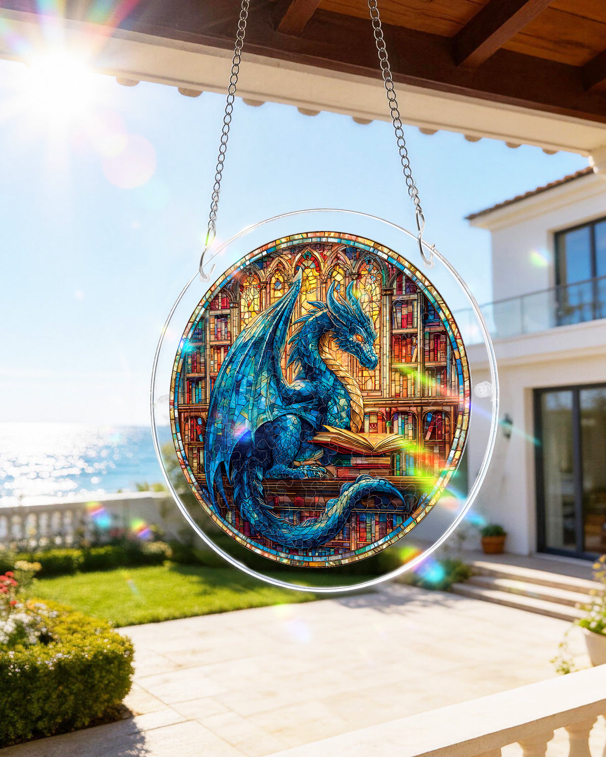 The Blue Dragon Library Light Suncatcher-Acrylic Window Art