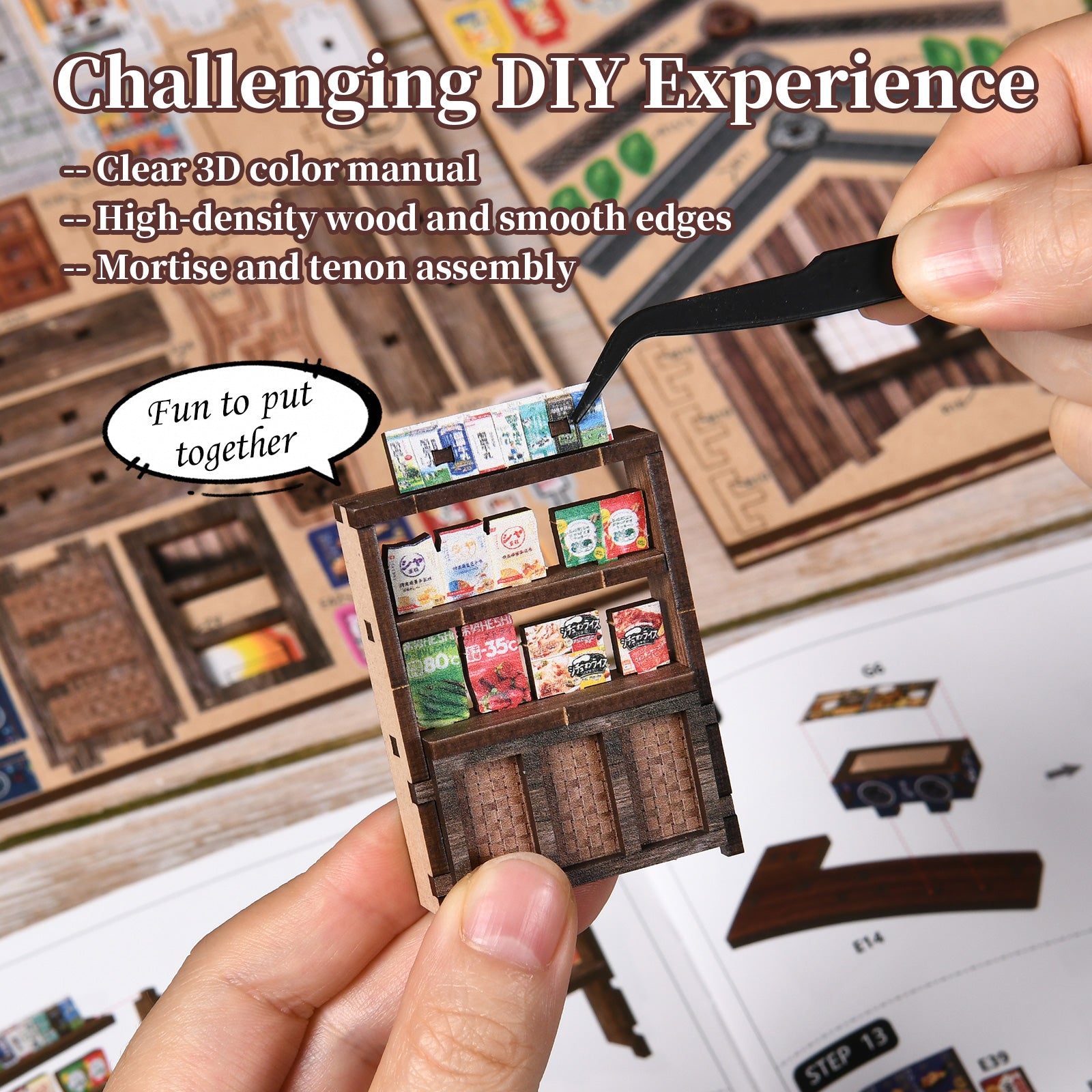 Bring the warmth of a neighborhood market to your home with the Kasukabe Grocery Store DIY Miniature House, a beautifully crafted model inspired by charming Japanese style storefronts. The Kasukabe Grocery Store captures the cozy atmosphere of a springtime general store, complete with detailed shelves, lantern lighting, and traditional wooden architecture. Made from premium material for durability and precision, this miniature house offers an immersive building experience with finely cut pieces and realistic textures.