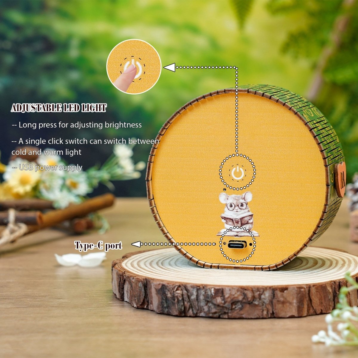 Unsere Nachtlicht-Sets verwenden LED-Licht. Bitte beachten Sie, dass das Produkt einen Typ-C-Anschluss für die Beleuchtung verwendet. Das Typ-C-Kabel ist jedoch nicht im Lieferumfang enthalten und muss vom Kunden selbst mitgebracht werden.