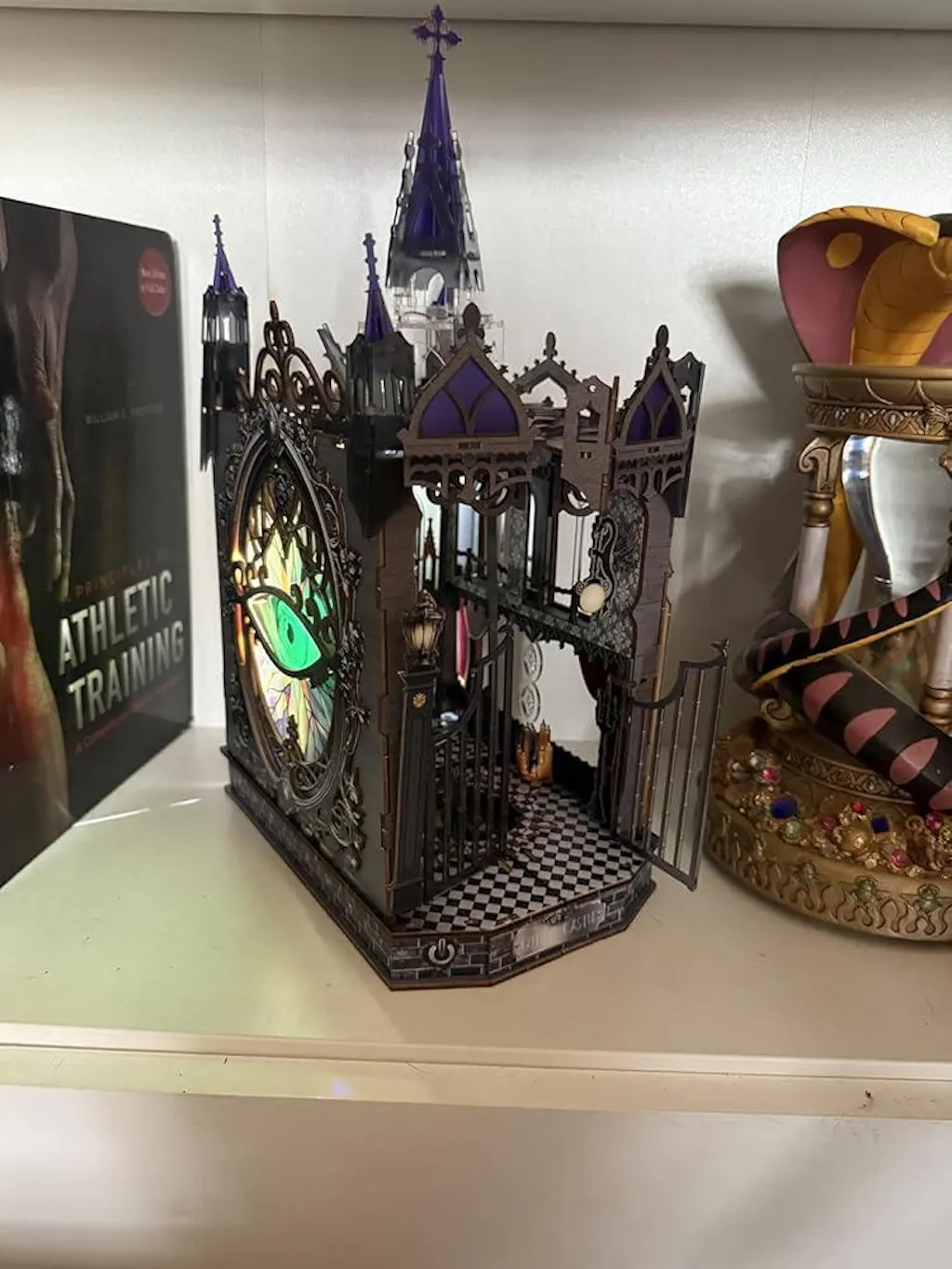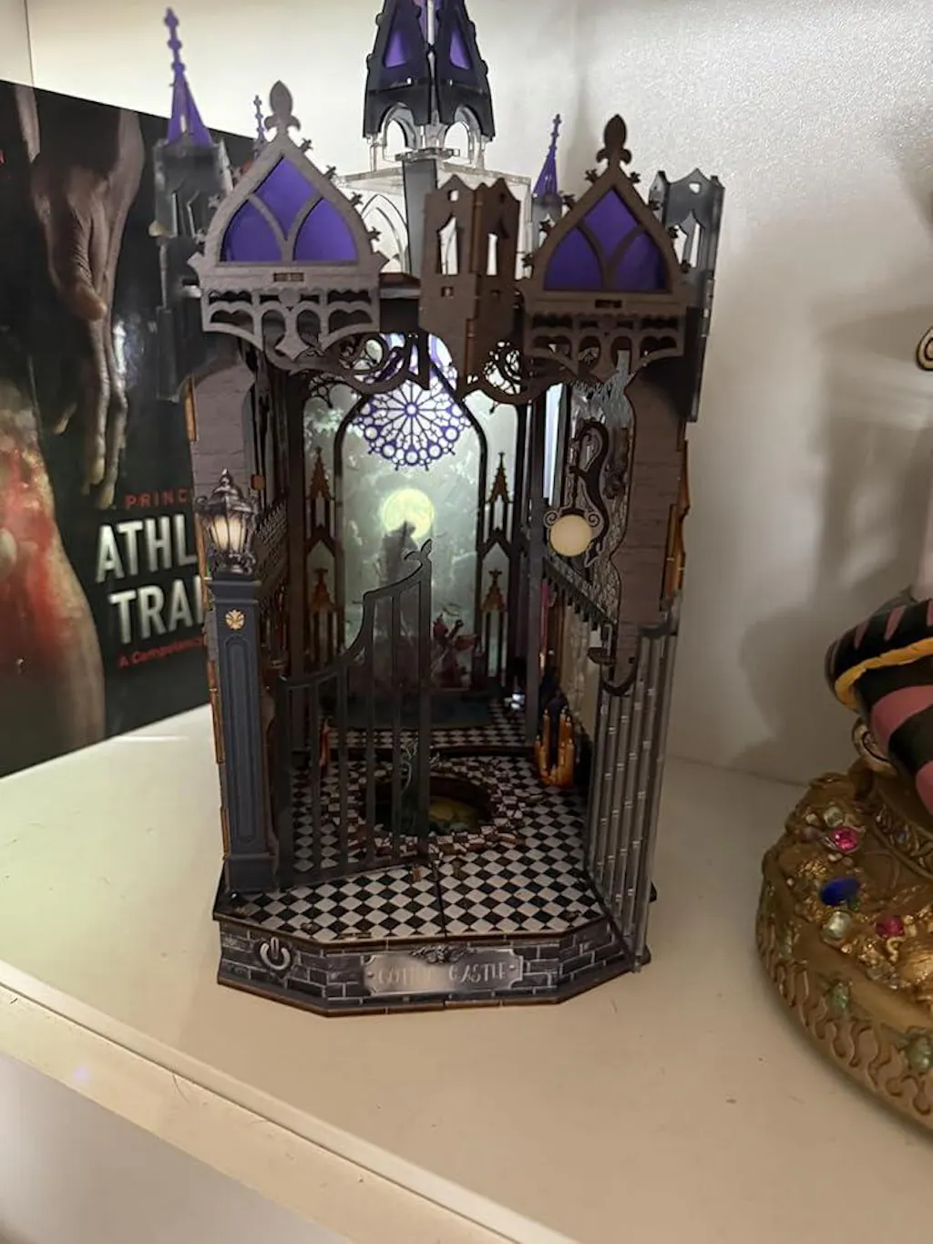 Jenseits der großartigen Architektur steckt diese Leseecke voller versteckter, unheimlicher Elemente. Entdecken Sie das geheimnisvolle magische Auge, Spuren des Teufelszaubers auf der bösen Theke und einen versteckten Ritter mit seinem geflügelten Schwert. Jedes noch so kleine Detail lädt Sie ein, die unbekannte Angst zu erforschen und den unterirdischen Teufel einzusperren.