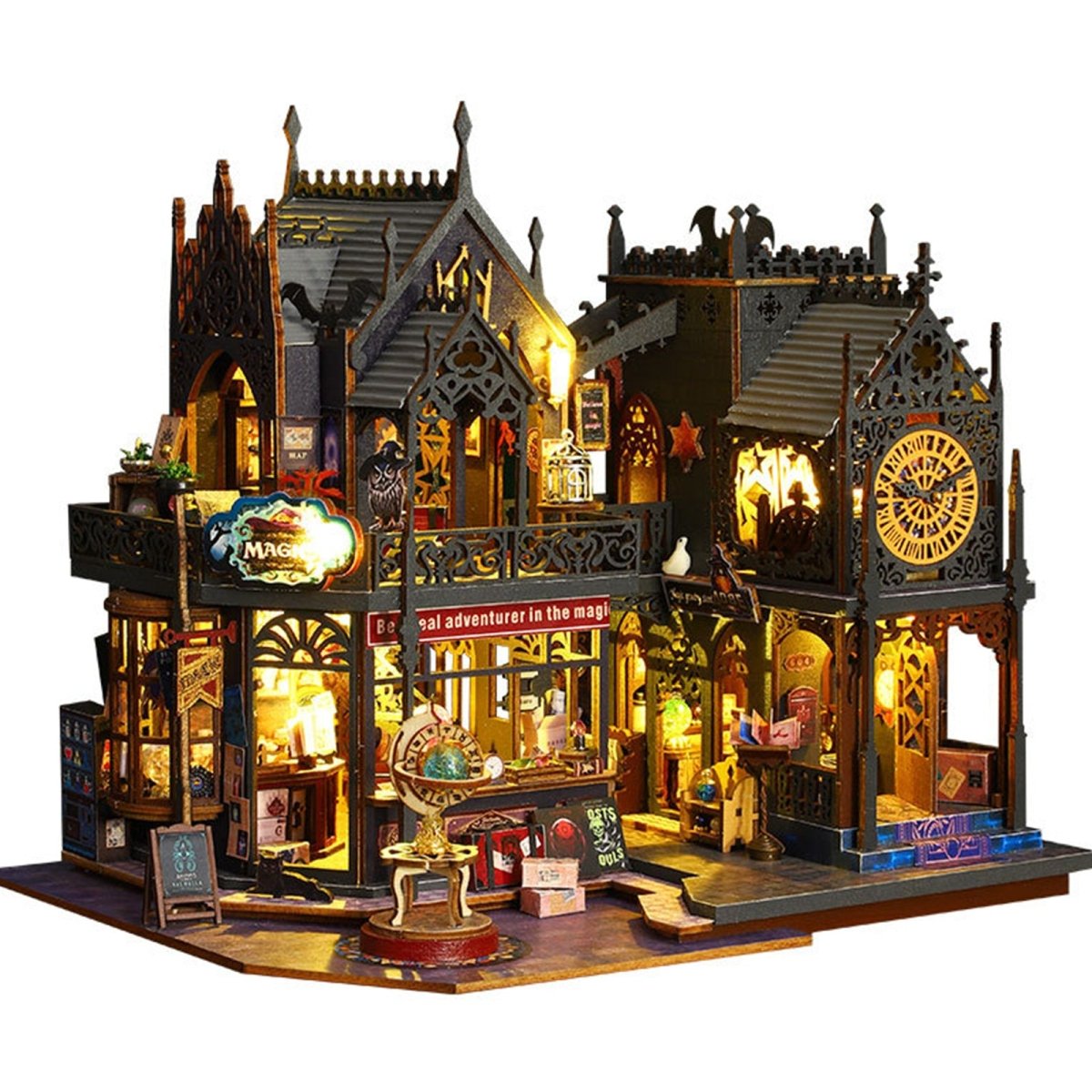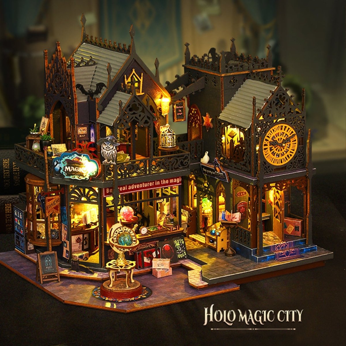 Step into a glowing fantasy world with the Holo Magic City DIY Miniature House, a richly detailed miniature scene that brings a mysterious magic town to life. Featuring illuminated buildings, spell shops, clocks, lanterns, and enchanting street details, this DIY miniature house is designed to create a warm, immersive atmosphere once completed. The layered architecture and soft LED lights add depth and realism, making it a stunning display piece for shelves, desks, or display cabinets. Perfect for DIY lovers and fantasy fans, the Holo Magic City offers relaxing hands-on fun while transforming into a captivating décor centerpiece that instantly adds charm and wonder to any space. ✨🏰