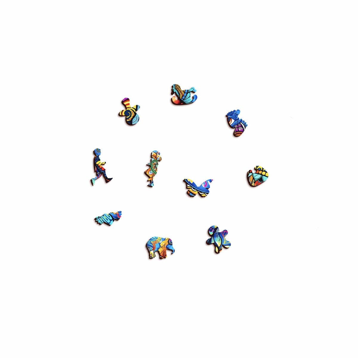 Les pièces façonnées sont des pièces de puzzle fabriquées à la main dans des formes reconnaissables.