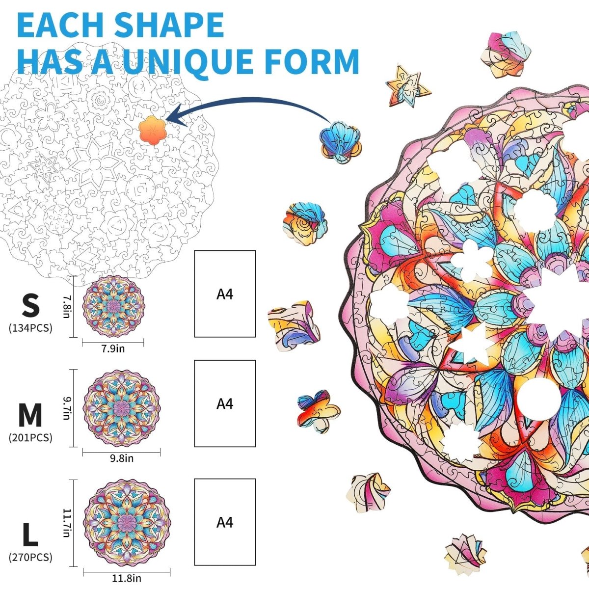 Les pièces façonnées sont des pièces de puzzle fabriquées à la main dans des formes reconnaissables.