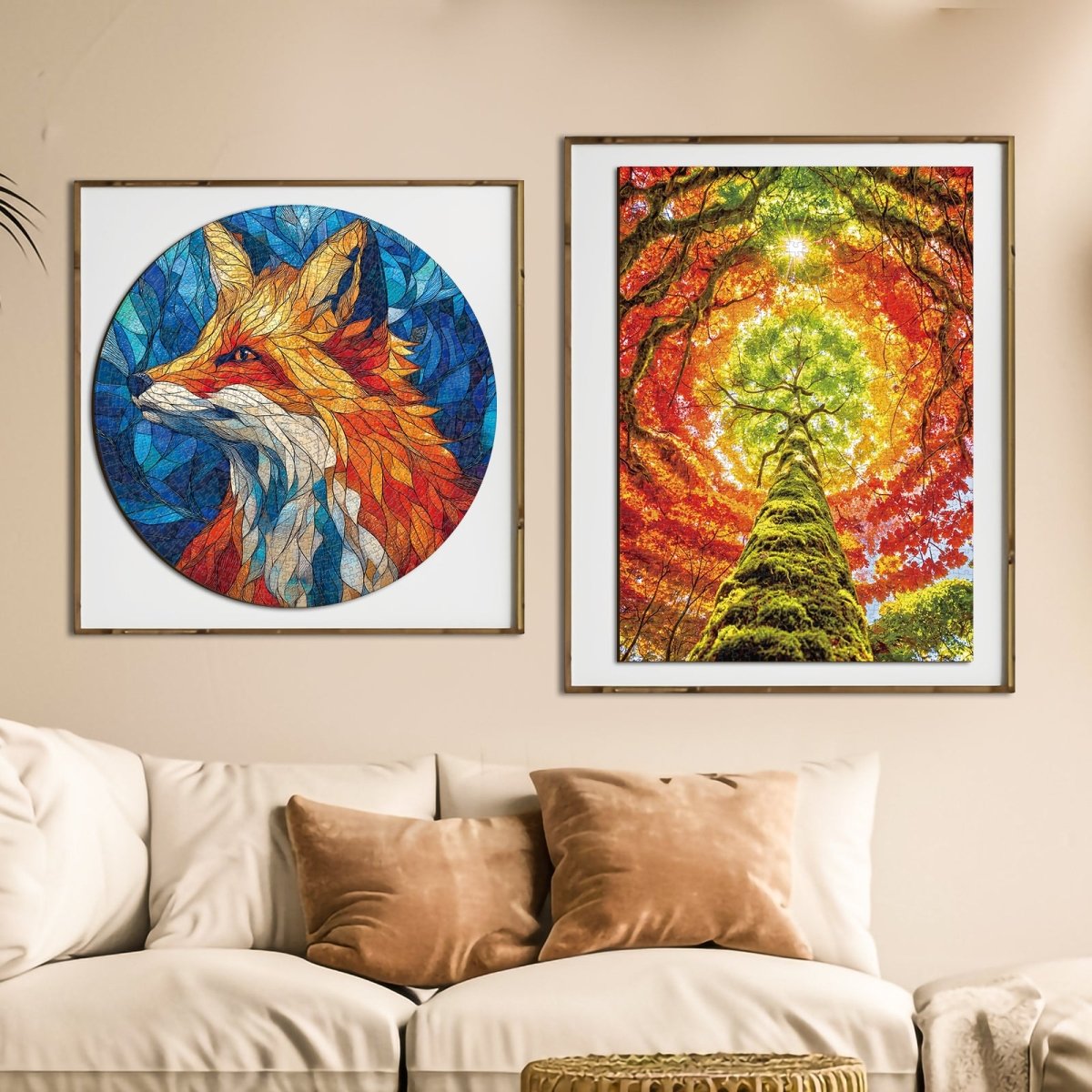 Step into a kaleidoscope of nature with this mesmerizing 1,000-piece puzzle. Featuring a moss-covered trunk reaching toward a radiant sunburst, the swirling canopy of red, gold, and green leaves creates a stunning circular gradient. It is an immersive, high-contrast challenge that celebrates the organic geometry of the forest.