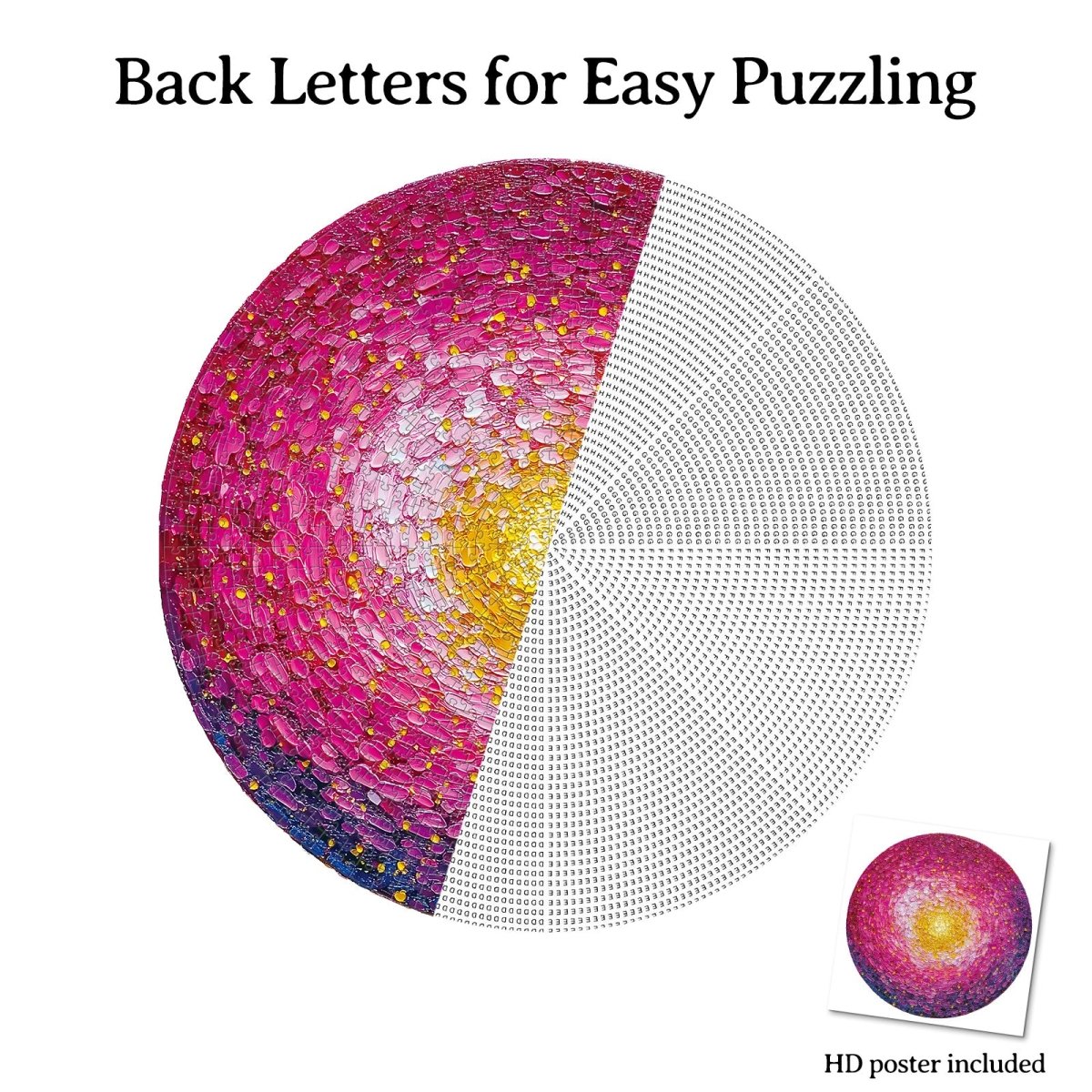 Immerse yourself in a symphony of color with the Palette Knife Art circular puzzle. This masterpiece captures a radiant burst of fuchsia, violet, and golden hues, applied with the textured, bold strokes of a palette knife. Its abstract, energetic design offers a vibrant and deeply satisfying challenge for art enthusiasts.
