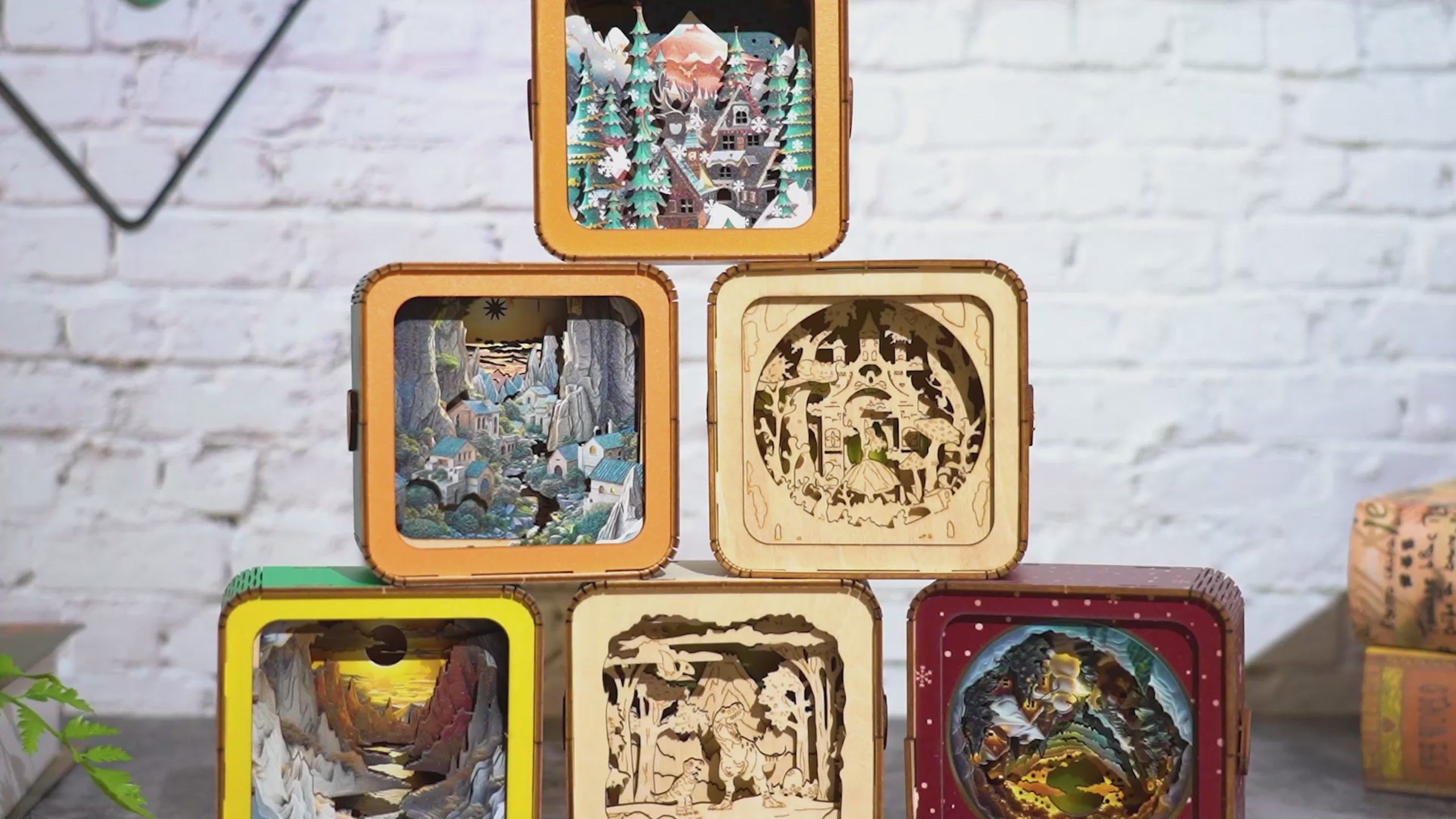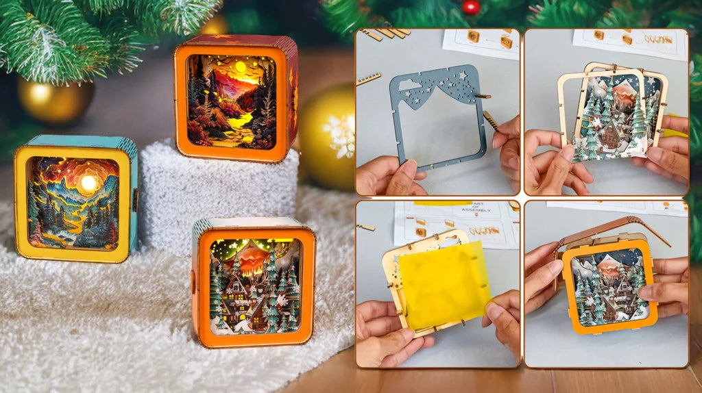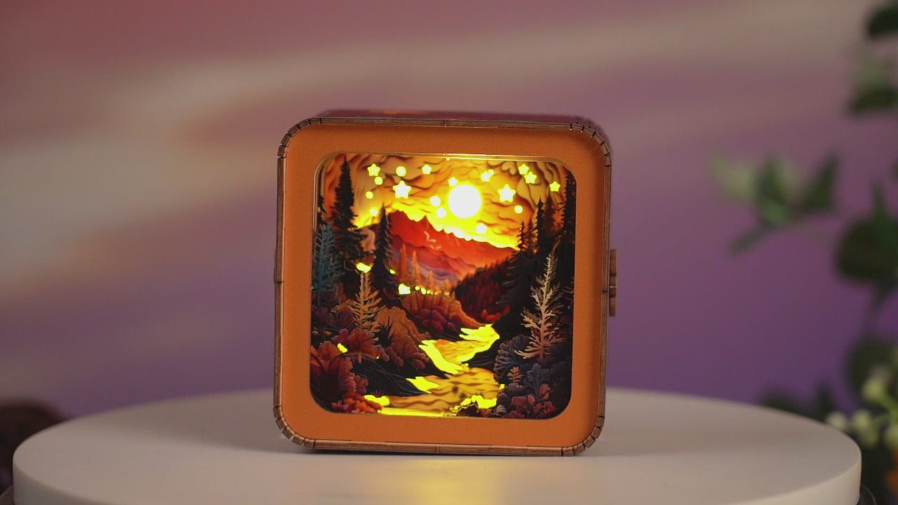 Explore the perfect fusion of creativity and practicality with our 3D wooden puzzle night light series. These puzzles are a joy to assemble, and once complete, they serve as stunning night lights powered by USB. With adjustable LED lighting, each design creates a cozy, inviting atmosphere, making them ideal for any room. These puzzles make for thoughtful gifts or charming decor for your own space, blending entertainment with functionality in a unique and artistic way. After putting this 3D puzzle together, you could see a stunning aurora world. Hope this night light could bring some warm feel to your room.