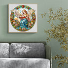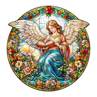 In a serene garden bathed in ethereal light, a beautiful and elegant angel sits gracefully amidst blooming flowers and swaying foliage. Clad in flowing robes that shimmer with a celestial glow, she exudes an aura of peace and wisdom. With delicate wings unfurled behind her, the angel is engrossed in a book, her serene expression illuminated by the gentle radiance that seems to emanate from within her. The air is filled with the melody of birdsong, and a sense of tranquility envelops the scene, as the angel's presence infuses the garden with a timeless serenity that transcends the earthly realm.