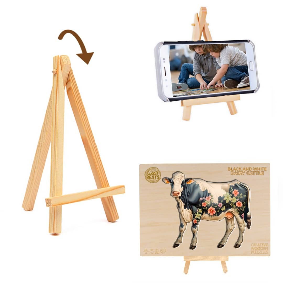 Black and White Dairy Cattle Wooden Jigsaw Puzzle
